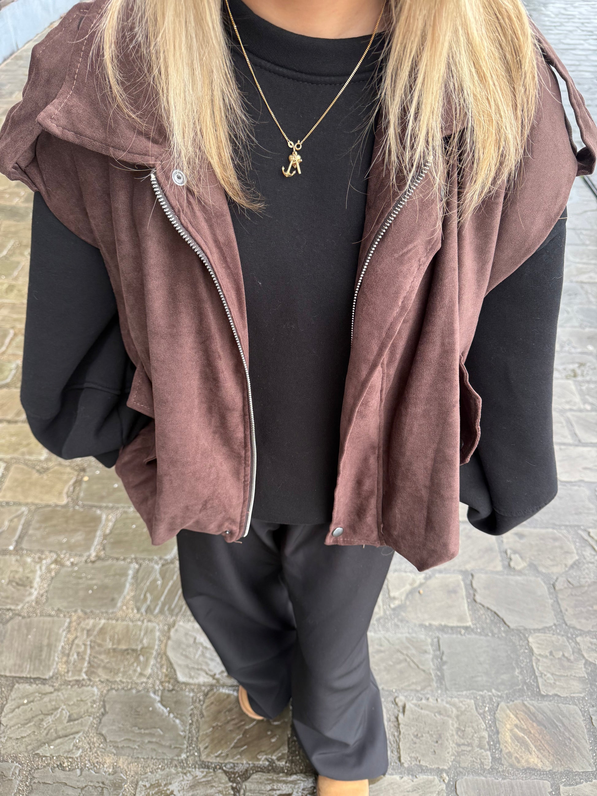 De Rhea Bodywarmer is het perfecte laagje voor dit seizoen. Ontworpen met een moderne oversized pasvorm en stoere schouders, geeft het elke outfit een moeiteloos stijlvolle look. Gemaakt van een suède-achtig materiaal met een gladde voering, en afgewerkt met een rits- en drukknoopsluiting en twee praktische voorzakken. Verkrijgbaar in diep bordeaux en donker marine — ideaal om je herfstlooks een extra touch te geven.