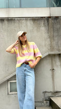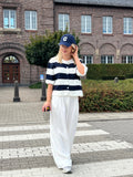Met zijn vrolijke strepen en korte mouwen is dit de perfecte knit voor elk seizoen.